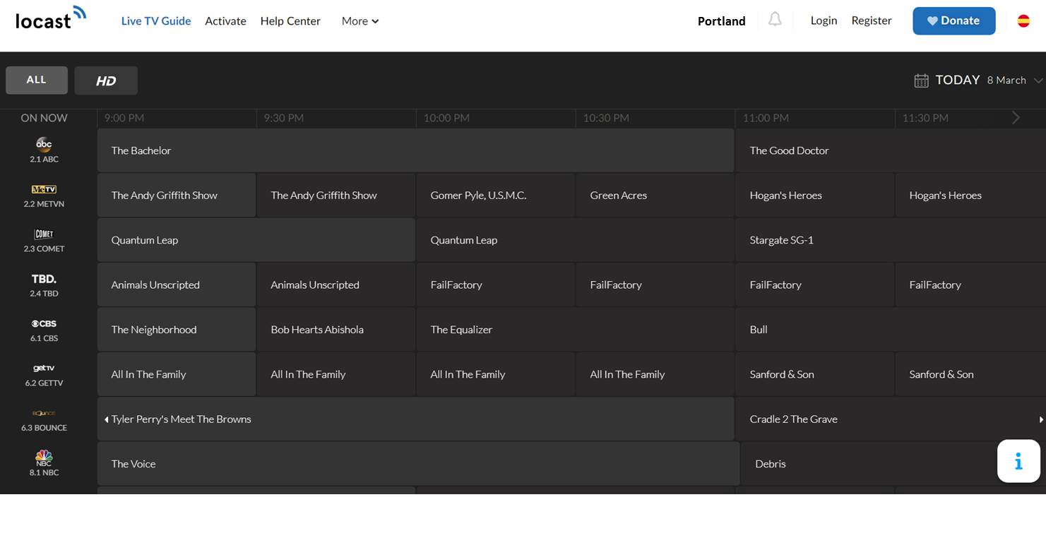 Portland Oregon - TVTVus - Americas best TV Listings guide. Easily watch what is on TV now and tonight in primetime with a TV antenna.